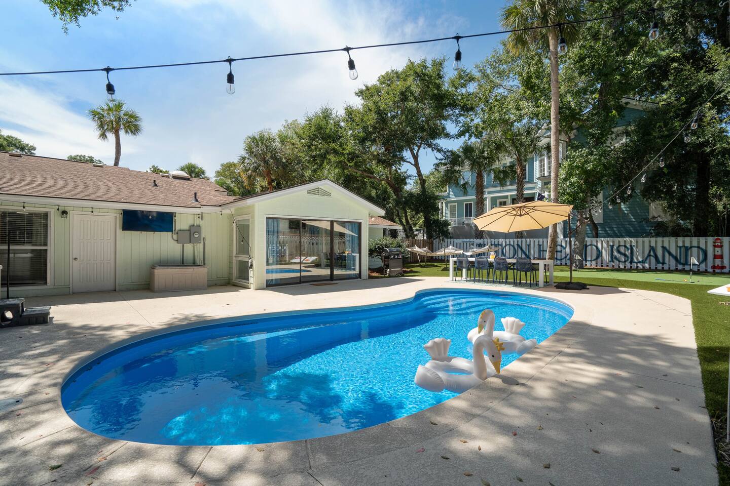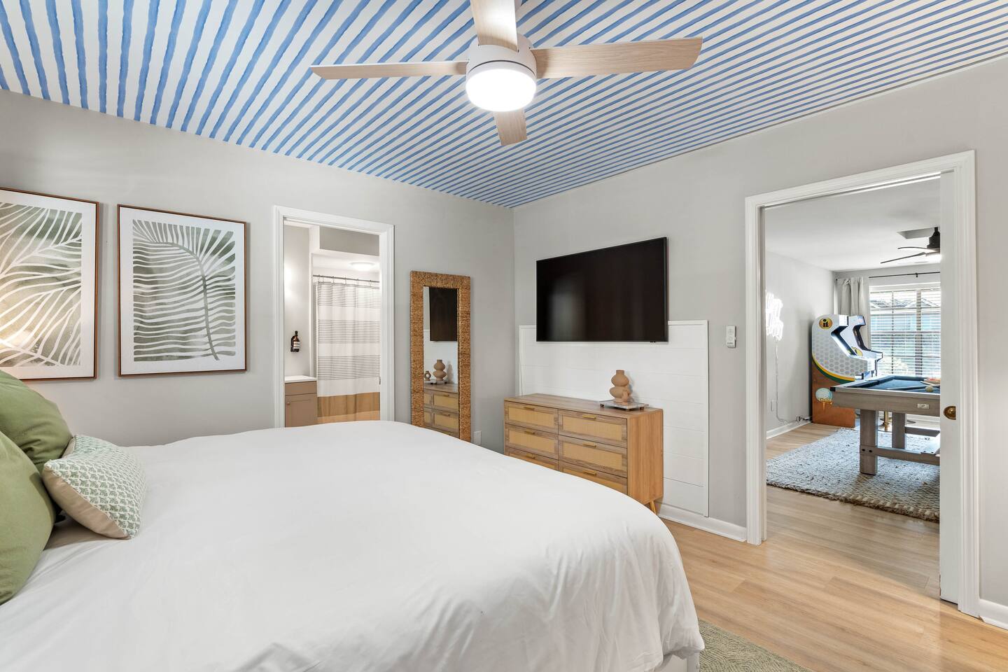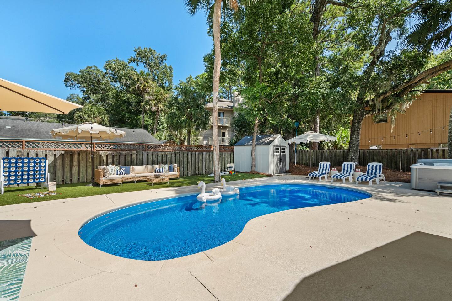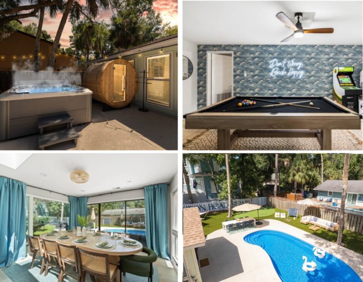 Welcome to your dream beach getaway! Just 400 steps from the shore, The Grace Claire luxurious home offers everything you need for the perfect escape. Enjoy a dip in the private pool, relax in the hot tub, or unwind in the barrel sauna. For fun, challenge friends to mini putt-putt, pool, or arcade games. Every corner of this home is designed with upscale furnishings and modern amenities, ensuring comfort and style. Whether you're lounging inside or soaking up the sun, fun awaits!
