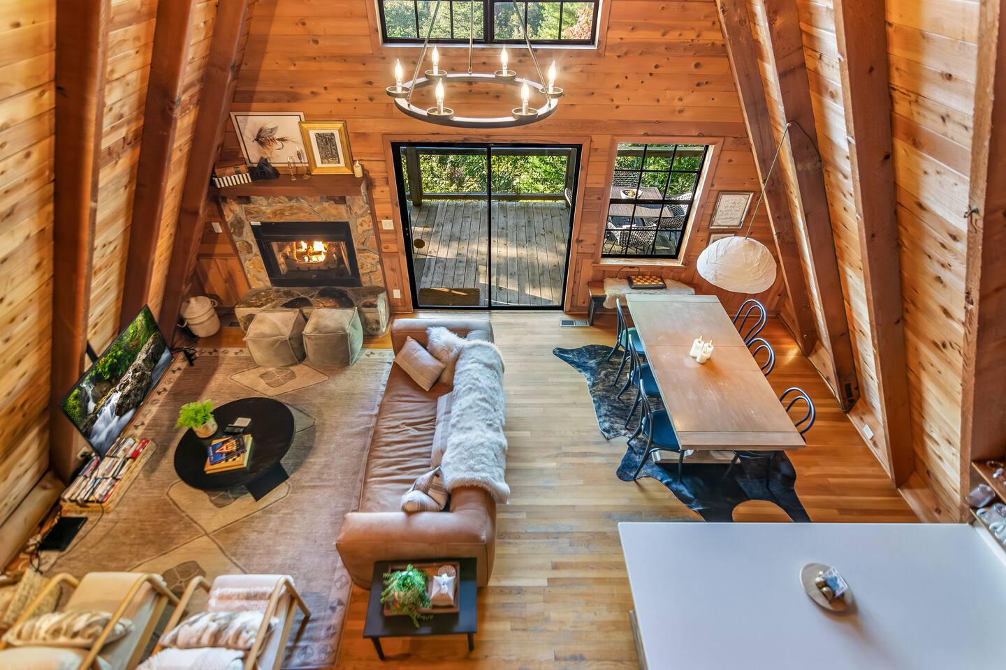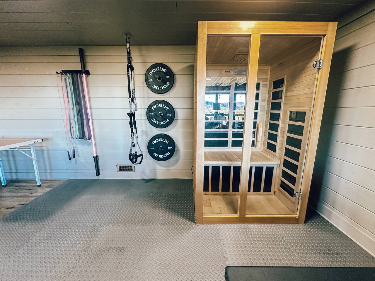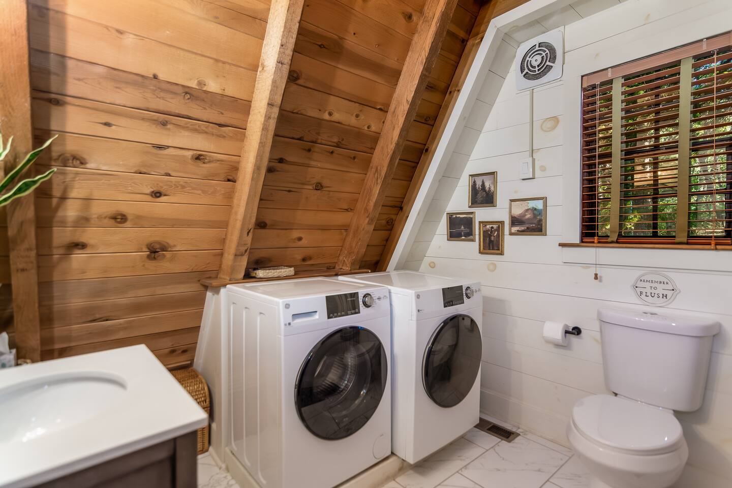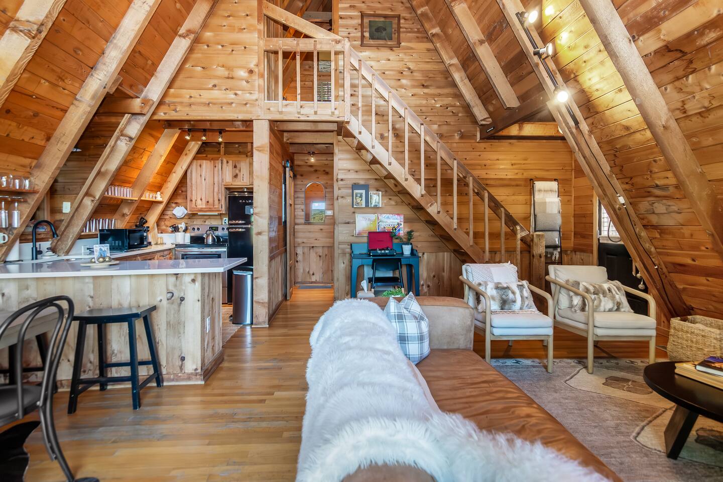 This special Aframe has 2 bedrooms; one King bed upstairs and one Full bed on the main level and one full bathroom. We also have an amazing Infrared Sauna and small gym with TRX Straps too, for all of your workout needs in the lower level. Gas fireplace makes indoor fires easy + enjoyable Sept-April. Outdoor firepit with wood provided. Full washer and dryer with laundry pods provided should you want to wash anything during your stay.