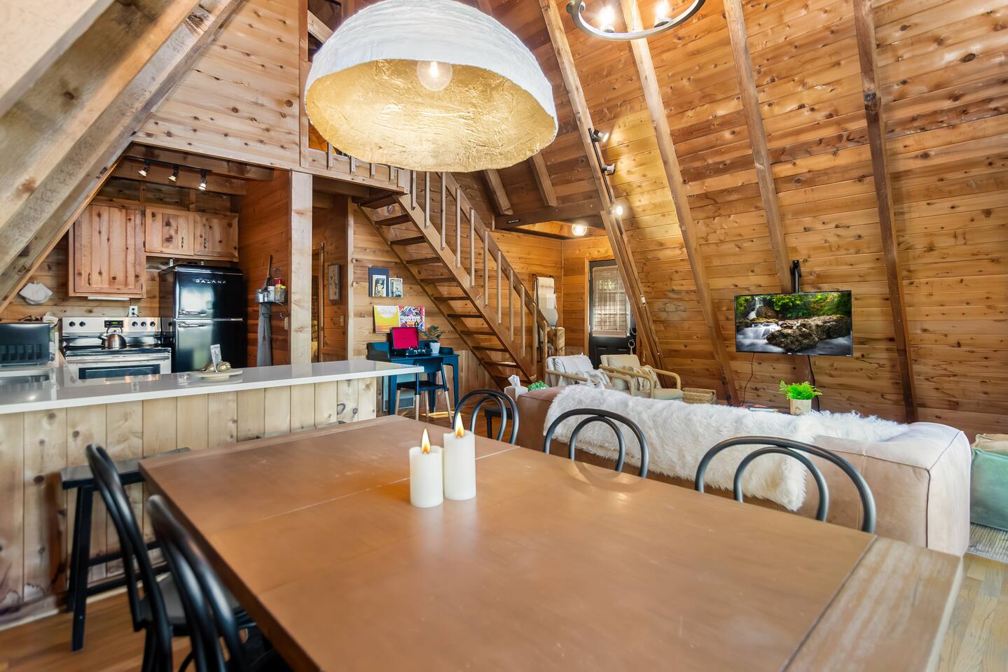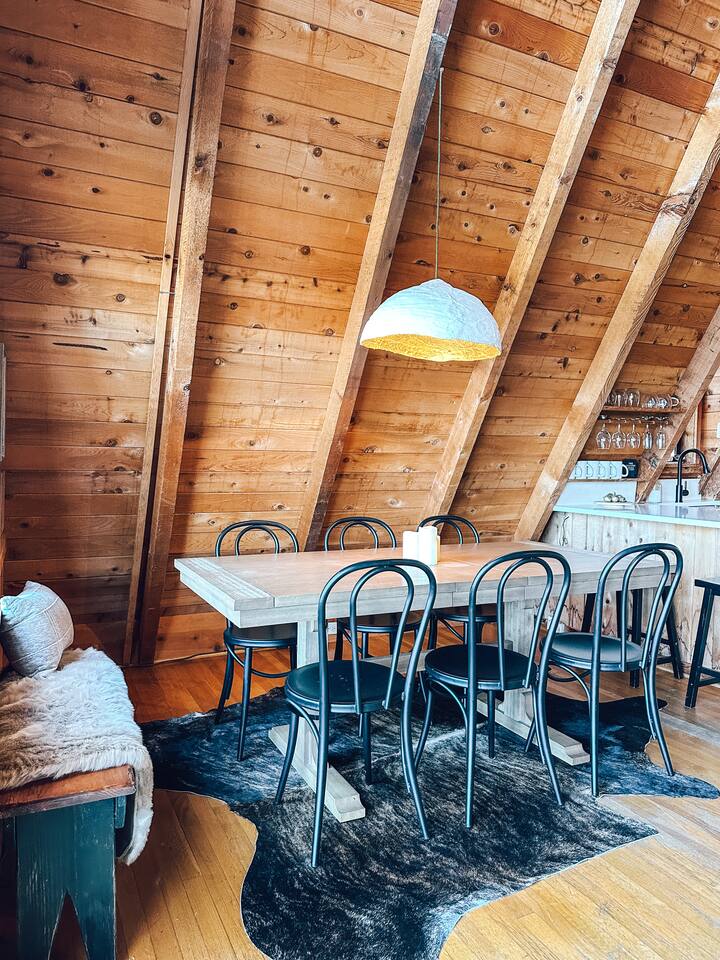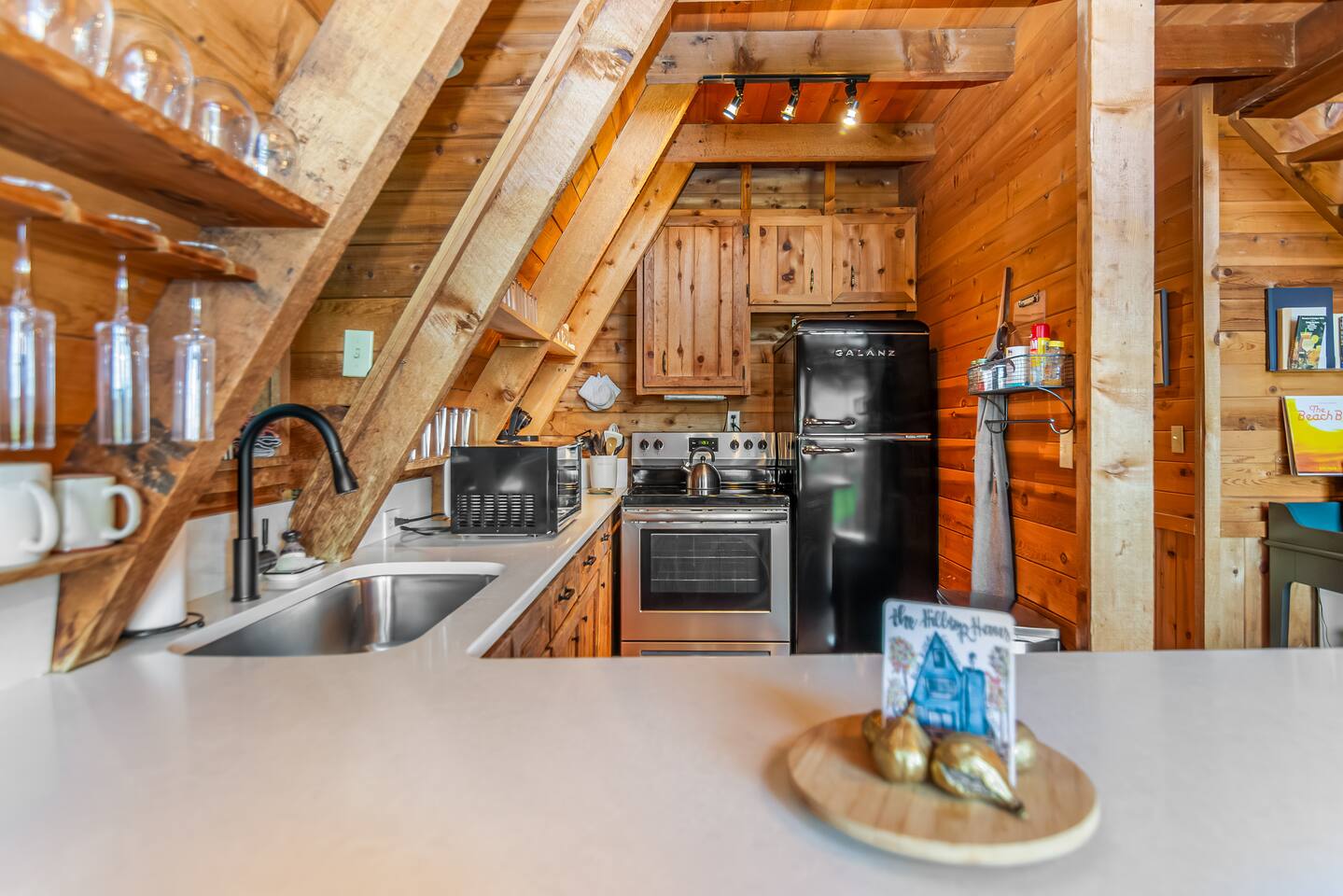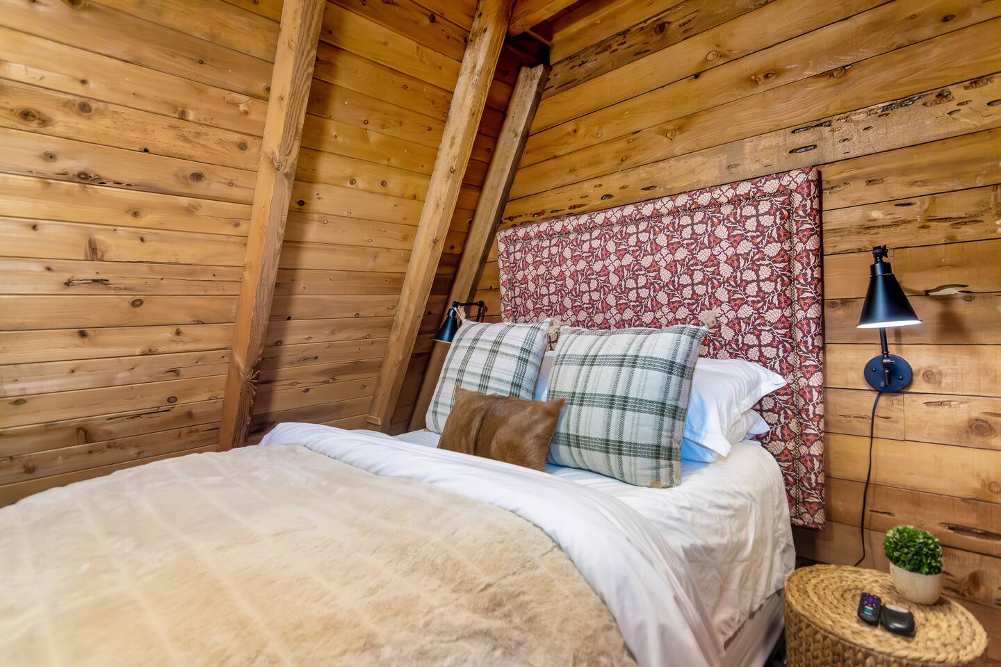 This special Aframe has 2 bedrooms; one King bed upstairs and one Full bed on the main level and one full bathroom. We also have an amazing Infrared Sauna and small gym with TRX Straps too, for all of your workout needs in the lower level. Gas fireplace makes indoor fires easy + enjoyable Sept-April. Outdoor firepit with wood provided. Full washer and dryer with laundry pods provided should you want to wash anything during your stay.