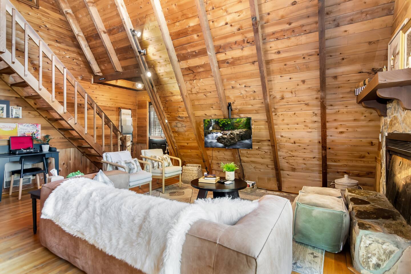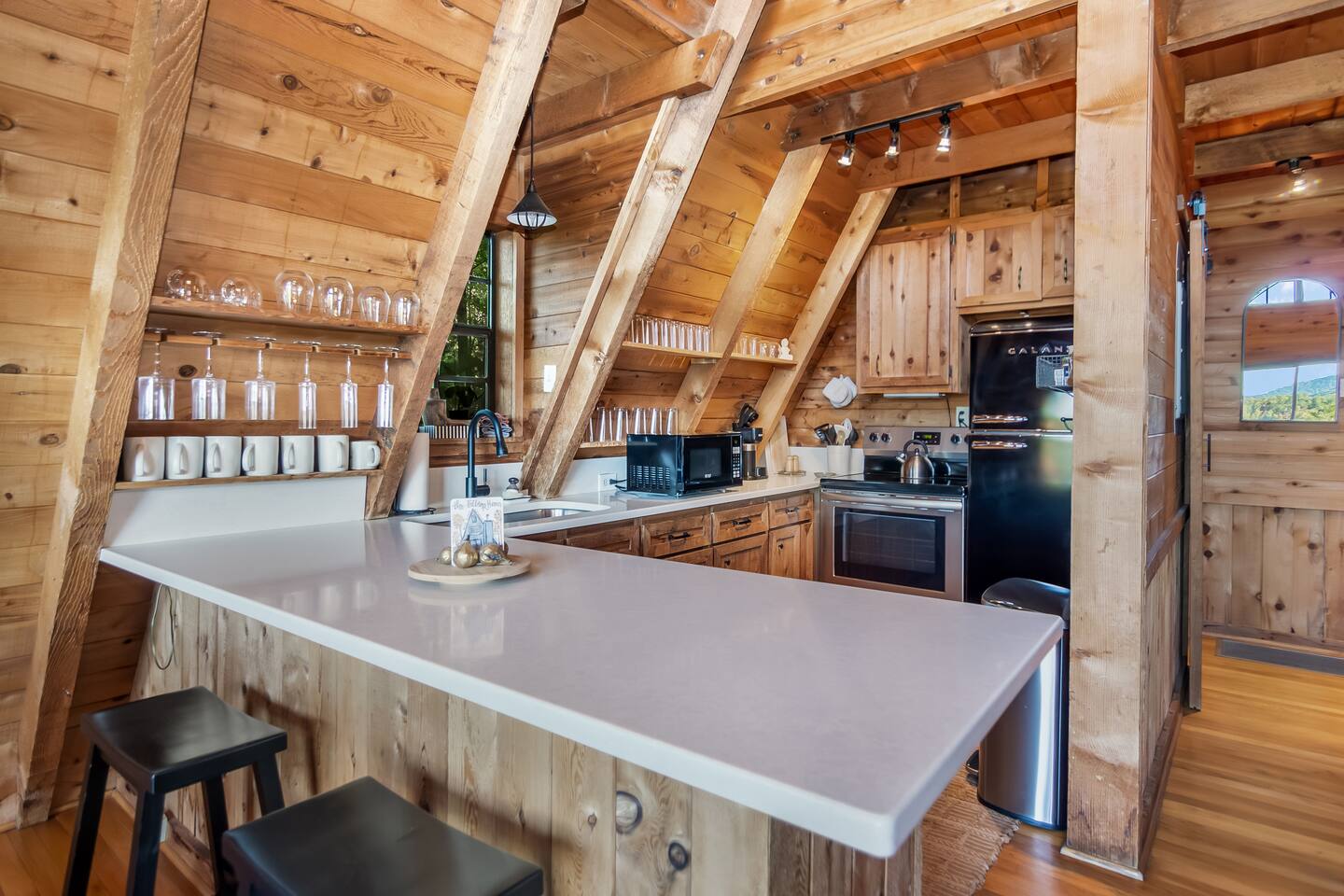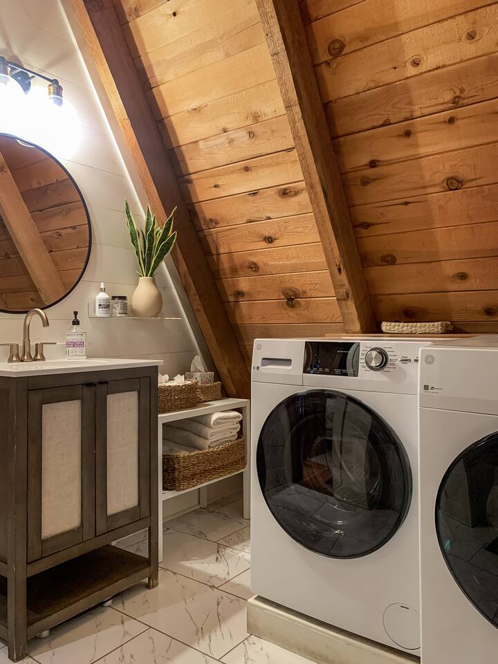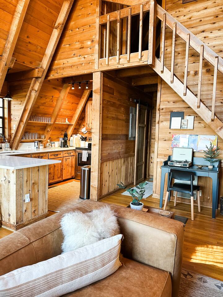 This special Aframe has 2 bedrooms; one King bed upstairs and one Full bed on the main level and one full bathroom. We also have an amazing Infrared Sauna and small gym with TRX Straps too, for all of your workout needs in the lower level. Gas fireplace makes indoor fires easy + enjoyable Sept-April. Outdoor firepit with wood provided. Full washer and dryer with laundry pods provided should you want to wash anything during your stay.