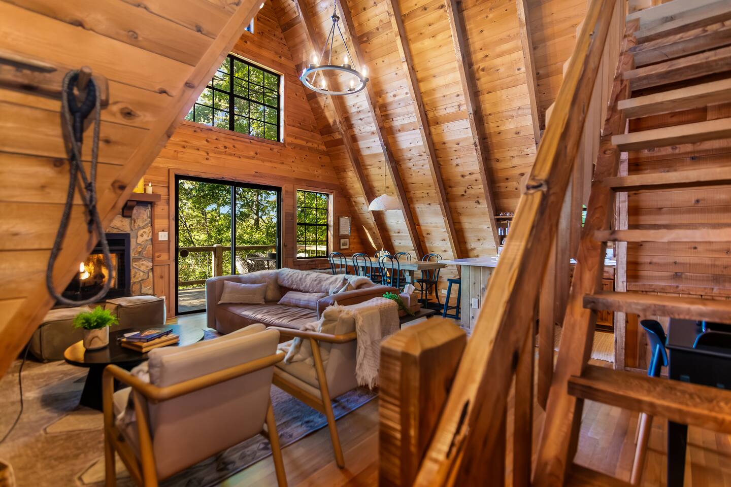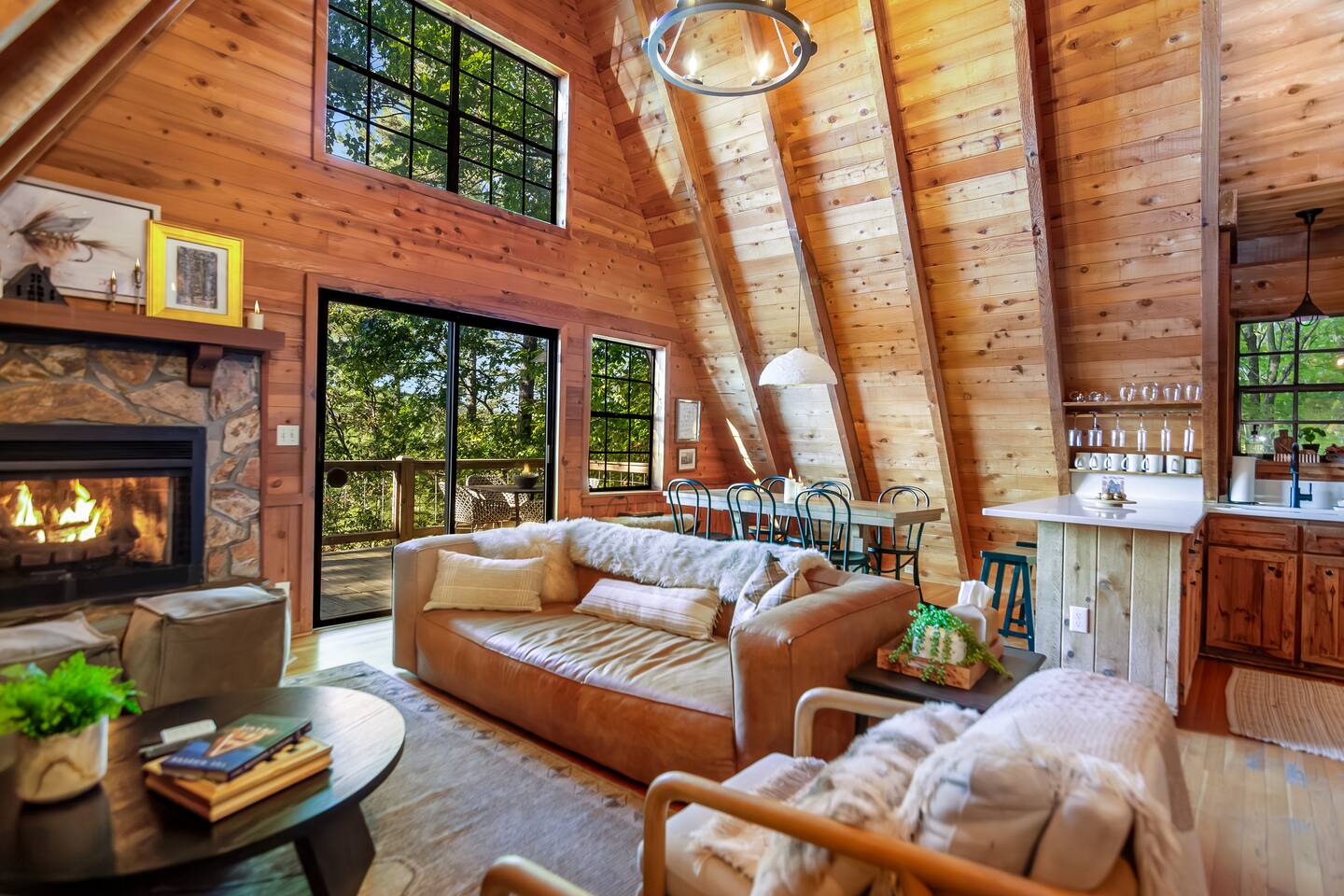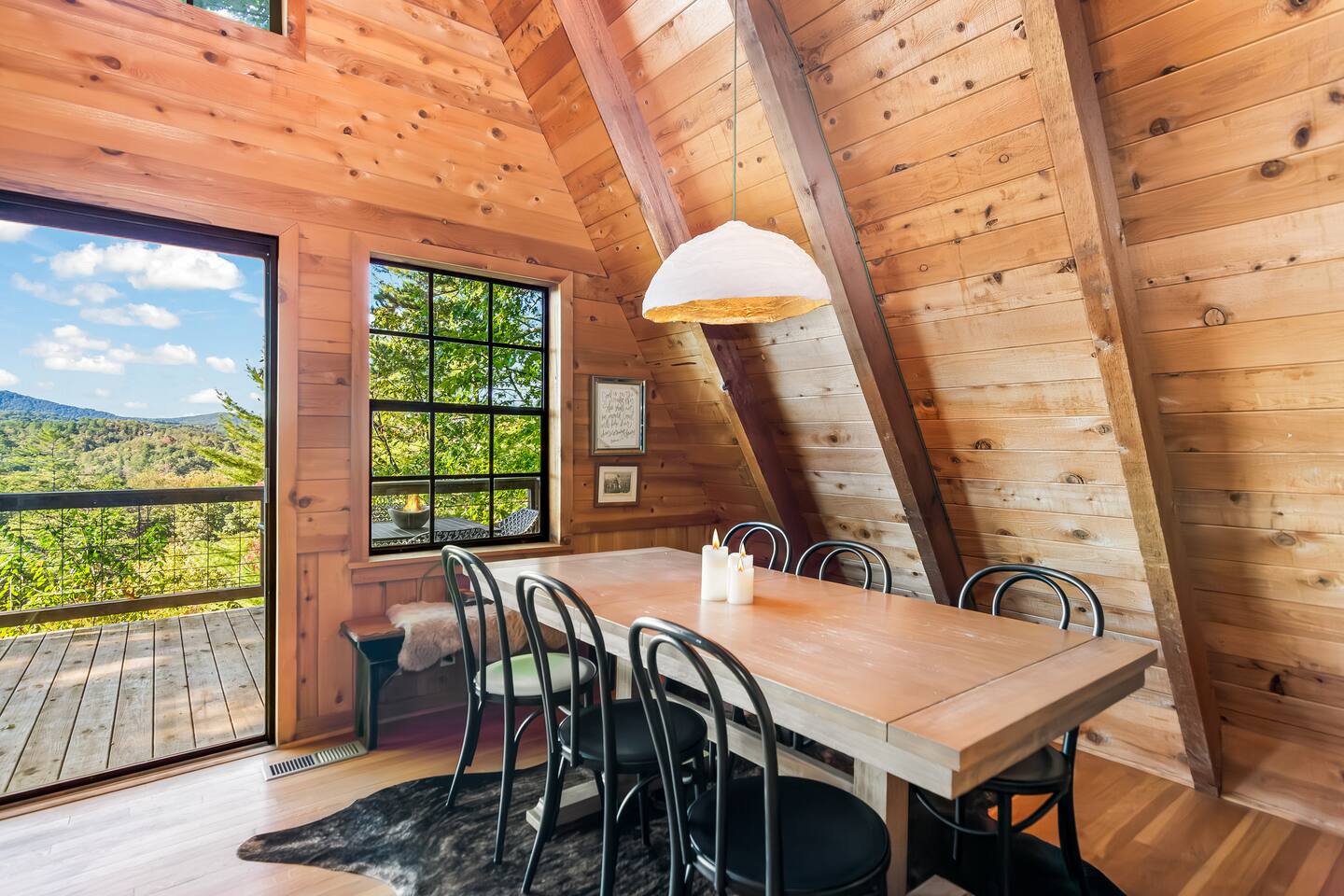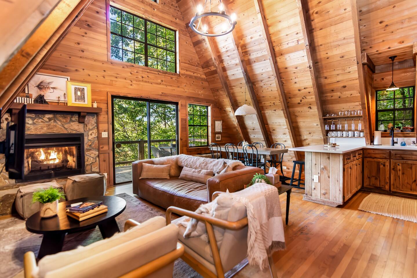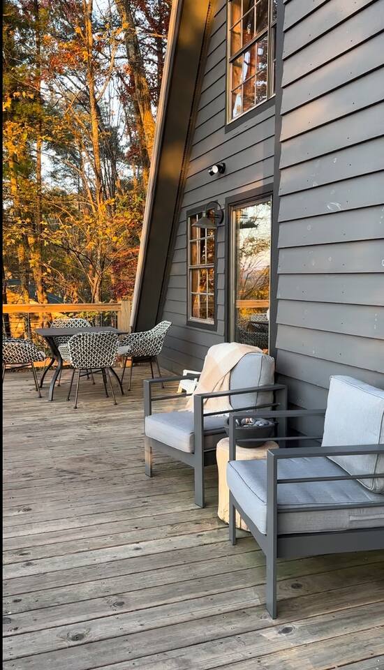 The Hilltop Haus is our home away from home. A little vintage A-Frame, nestled in the woods, with breathtaking year-round views of the Blue Ridge mountains. We're so excited to share our private getaway with you. Our cabin is just minutes from all the restaurants and shopping you could ask for. Nature filled activities surround us- hiking, world class fly fishing, white water rafting, and more! You can expect to be immersed with nature, privacy, and absolutely incredible sunsets.